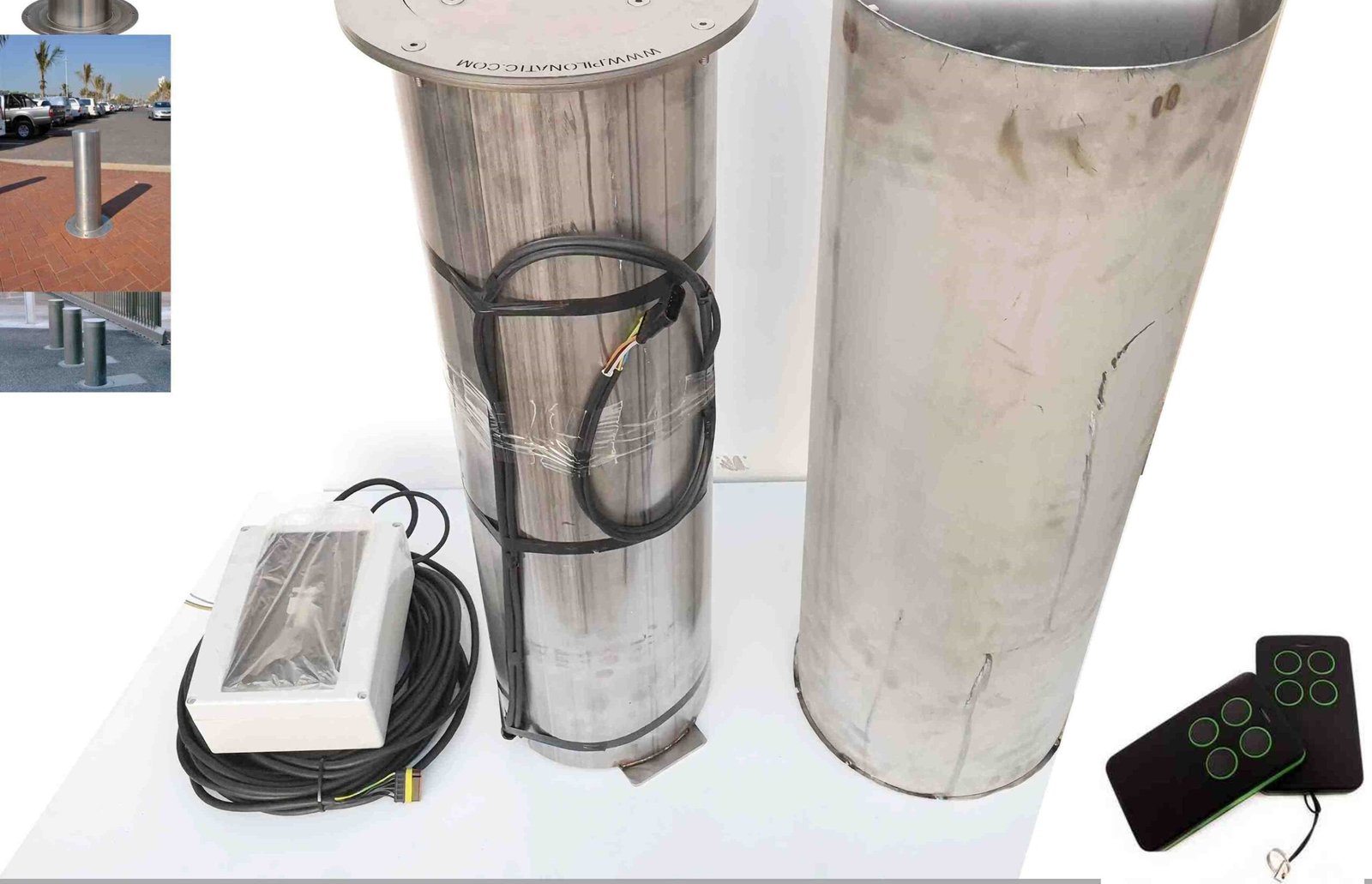 Pilona automatica de acero inoxidable  diametro 220mm altura 500mm La principal caraterística de esta gama es el espesor del cilindro o vástago, siendo de 4 mm